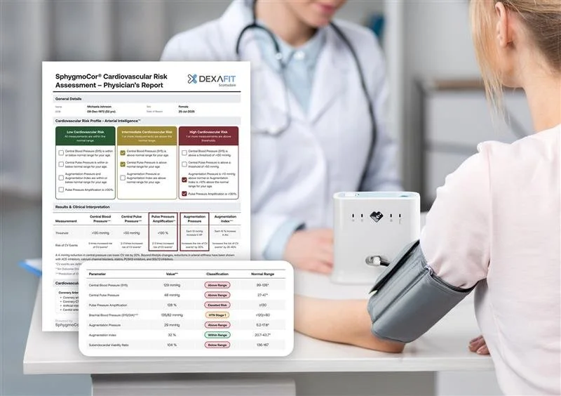 At DexaFit Central Jersey, we are evaluating new technologies to better understand cardiovascular health and longevity. As part of this process, we are gauging interest in the SphygmoCor® Arterial Assessment—a tool that measures vascular age, arterial stiffness, and heart workload to provide data beyond a standard blood pressure reading.